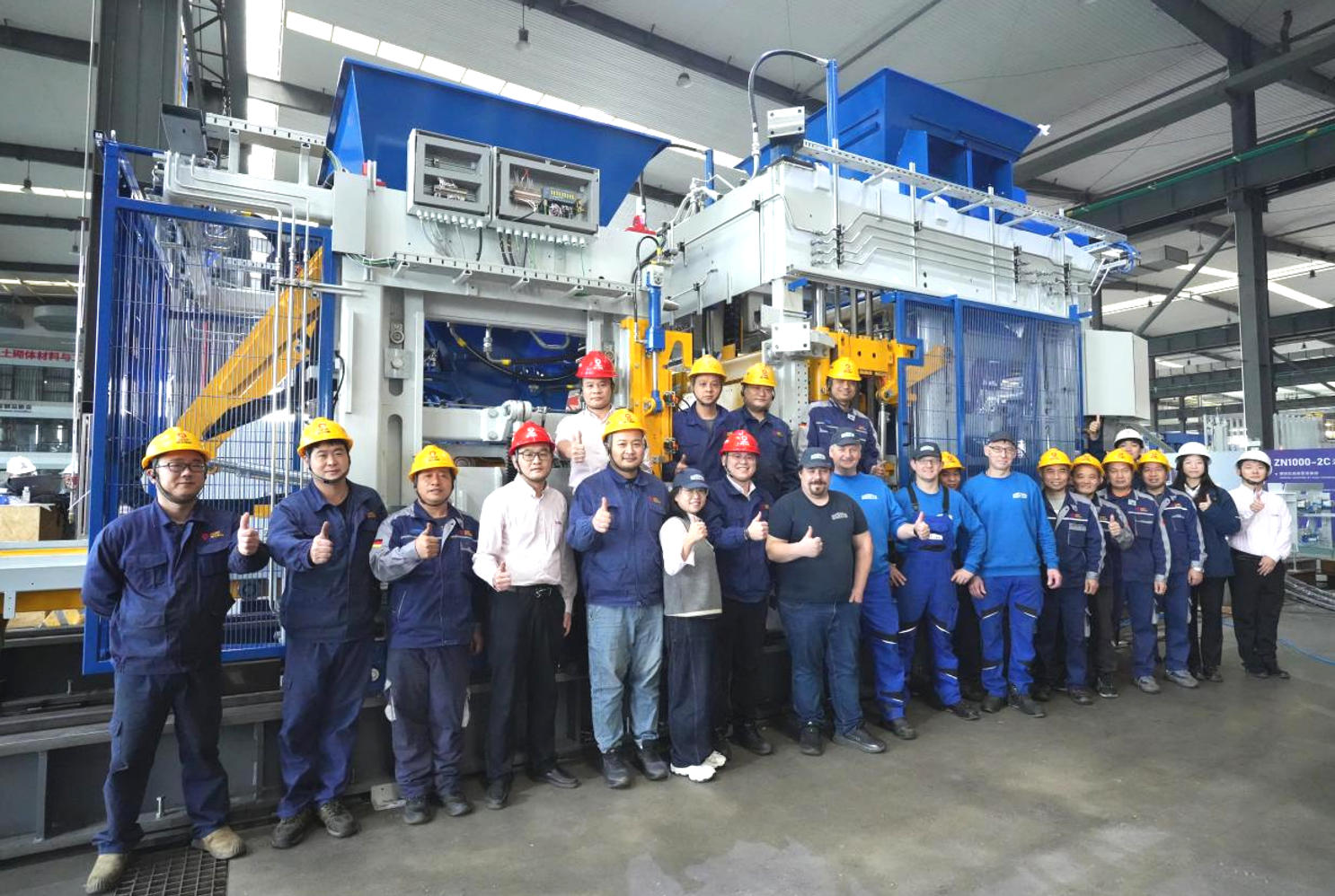 Katika enzi ya leo ya ujumuishaji wa kina wa utengenezaji wa kimataifa, ili kuhakikisha kuwa mradi wa mteja otomatiki wa uzalishaji wa matofali unafanikishwa kwenye ratiba, uagizaji wa ubora wa juu, ZENITH—tawi la Ujerumani la Quangong Co., Ltd.—ilituma timu ya wahandisi wakuu kwenye tovuti ya mradi hivi majuzi. Kikundi hiki cha wataalam kiliungana na wafanyikazi wakuu wa kiufundi wa Quangong kuunda timu ya pamoja ya huduma, na kuanzisha juhudi kubwa za ushirikiano. Ushirikiano huu umeweka ulinzi thabiti wa kiufundi kwa ajili ya utekelezaji bora wa mradi.